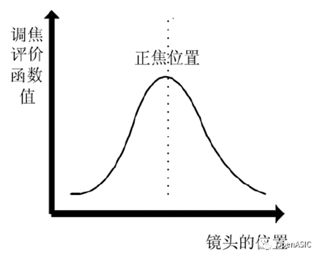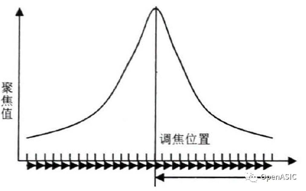 在聚焦调节范围内,每一个调焦位置会对应一个对比度值,即对焦值,这些对焦值形成一条曲线,通常称为对焦曲线,如下图1所示。评价函数往往决定了对焦效果的好坏,即图像的清晰程度。