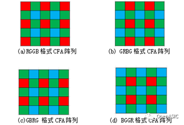 常见的Bayer阵列格式按照RGB的不同排列方式分为4种,总结如图2.1所示。