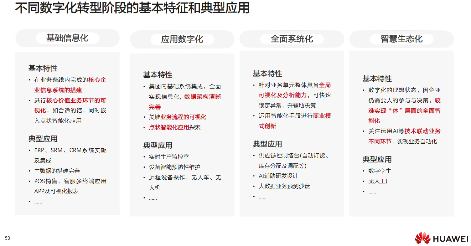 数字化转型各阶段的基本特征和典型应用