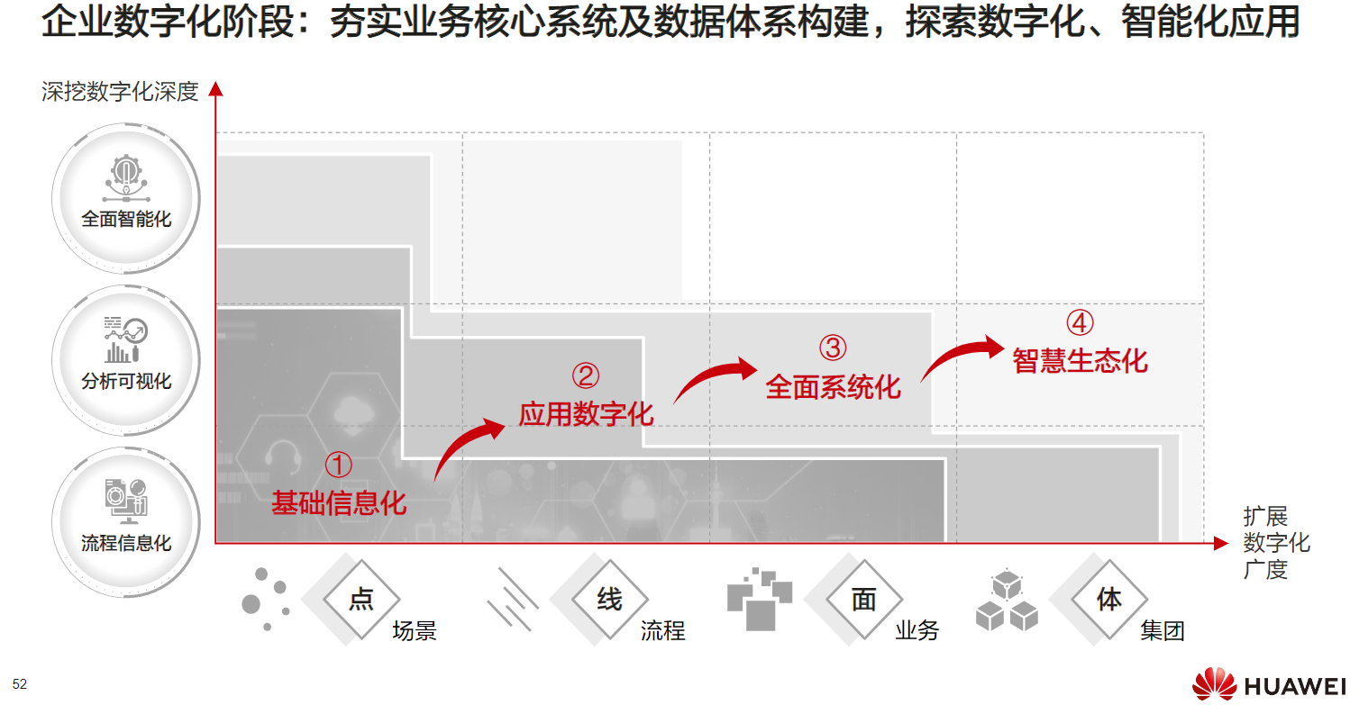 企业数字化阶段,可以划分成以下四个阶段: