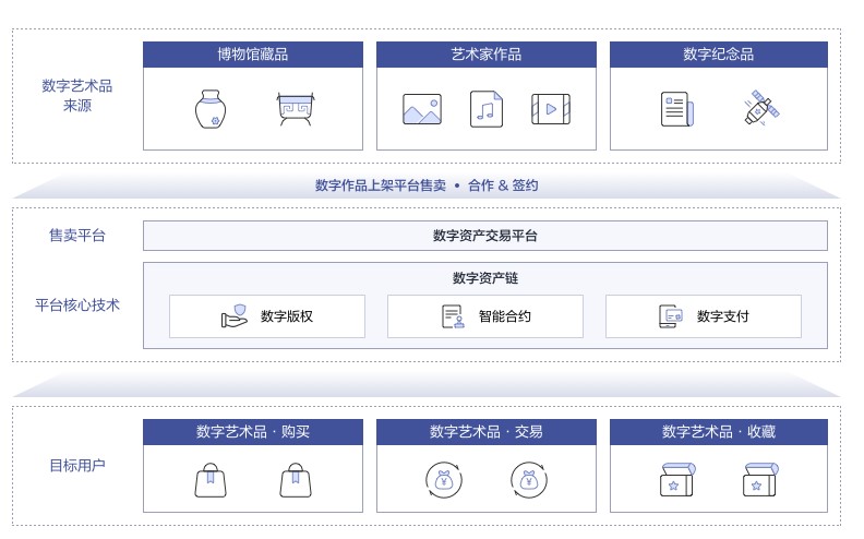 面向互联网、社交文娱、游戏等行业,DAC提供数字版权、数字内容创作、数字资产交易以及数字支付服务,可广泛应用于营销、版权保护、数字内容收藏场景。赋能数字营销,简化版权保护,构筑游戏经济,推广数字藏品。
