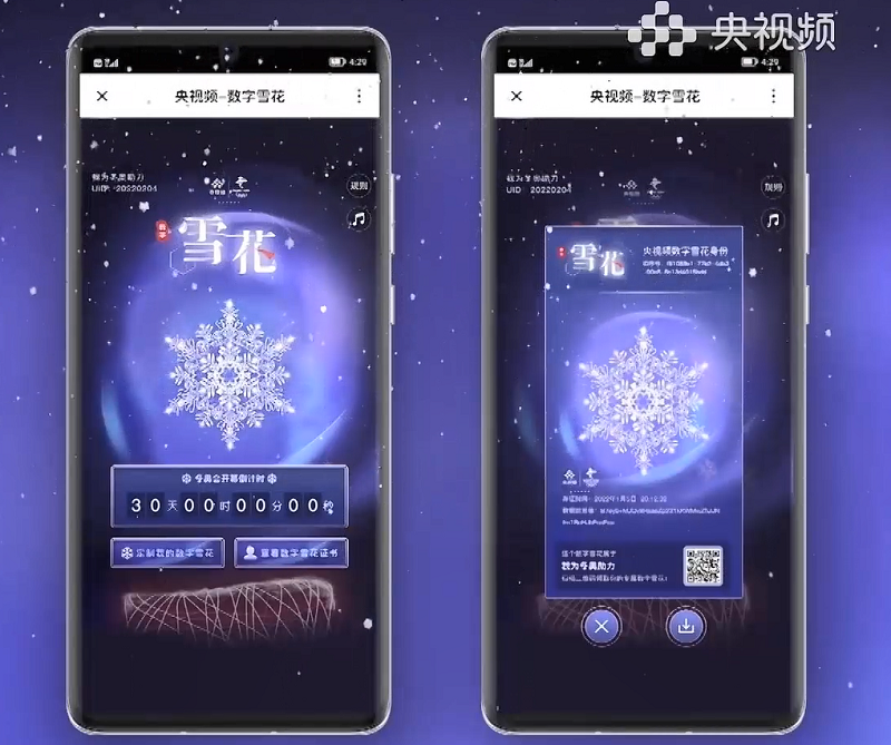 此前,央视频就使用华为云BCS数字内容服务,为用户送上独一无二的“数字雪花”,基于用户的ID,生成独有的数字雪花特别证书,并附有雪花ID序号、存证时间、授时凭证编号、数据哈希值等具有独特性与唯一性的信息。