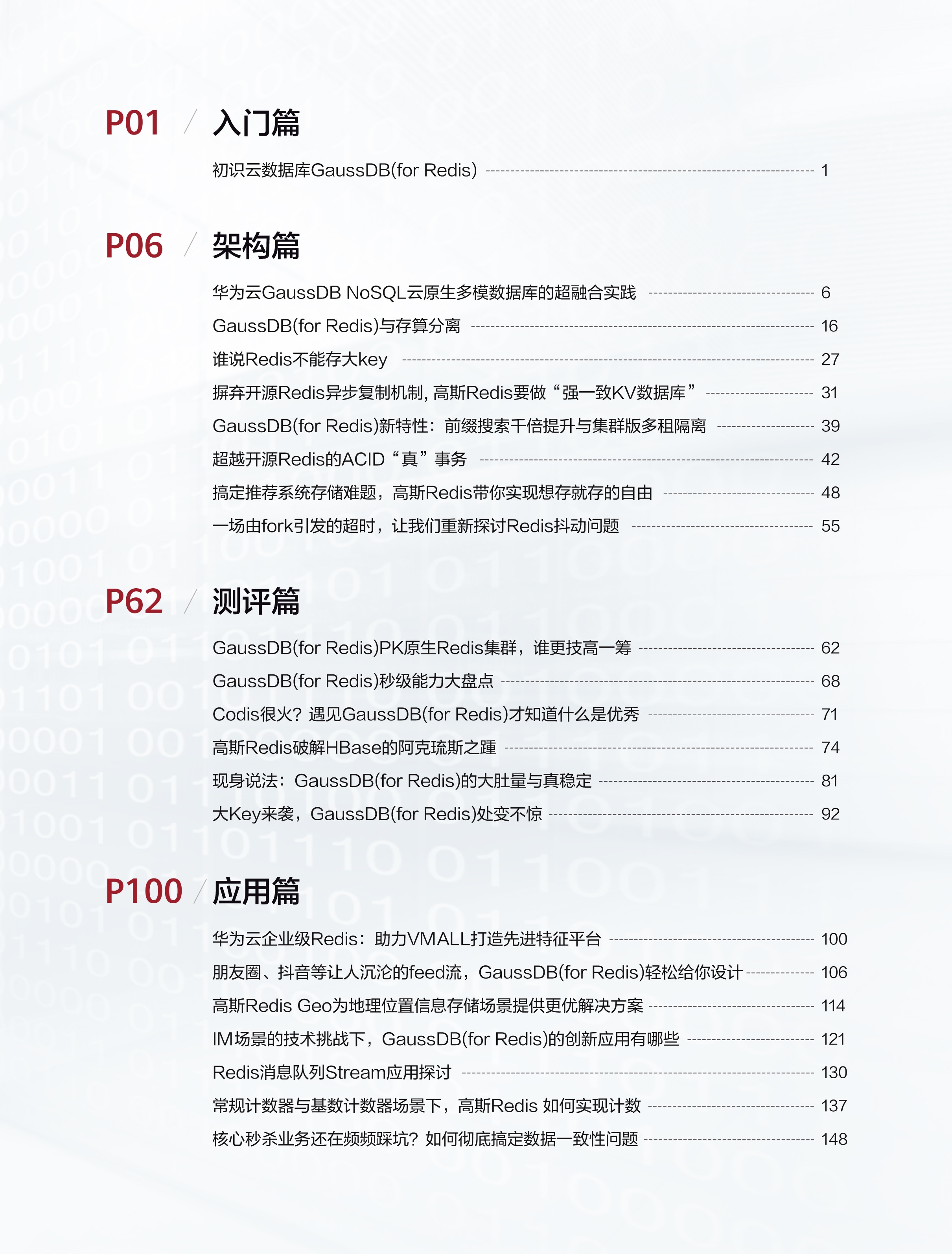 第二章节是 GaussDB(for Redis) 硬核性能技术实践(共8篇),如突破开源内存限制、存算分离架构、数据强一致性、企业级事务等性能的技术架构与实践之路。