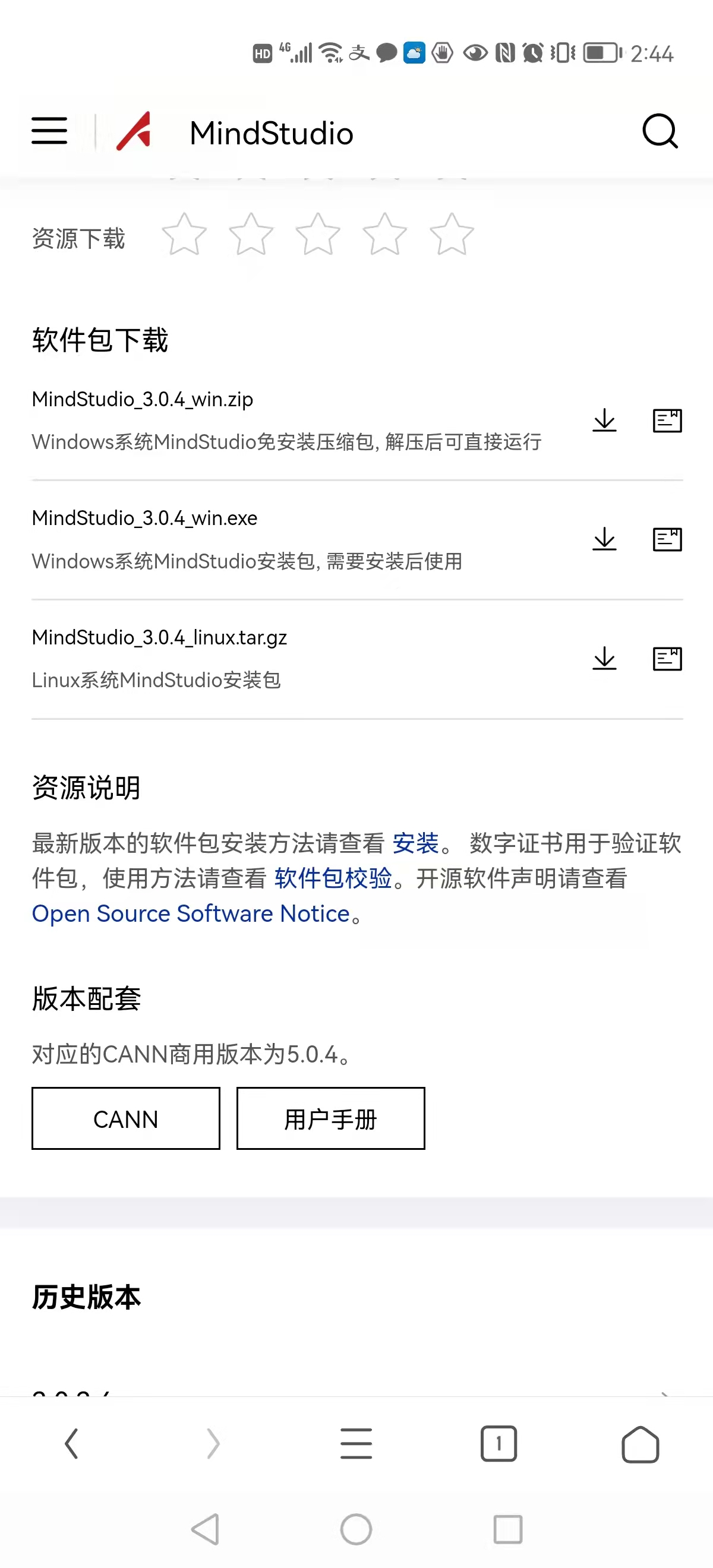 因为CANN的开发工具链MindStudio 3.0.4目前仅支持到CANN 5.0.4:
