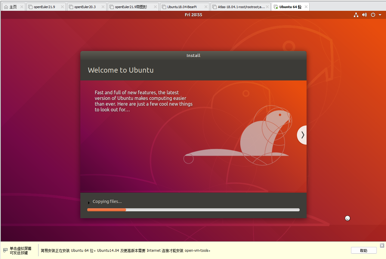 耐心等待系统安装: