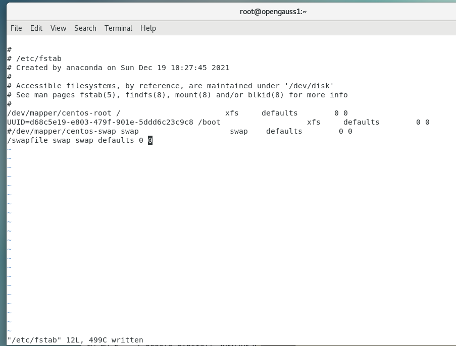 修改/etc/fstab文件以便重启系统后依然生效: