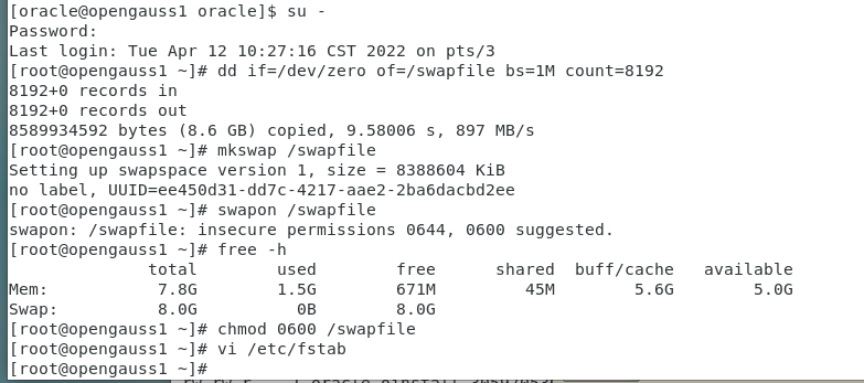 (1)swap空间不够: