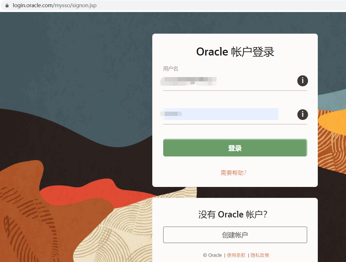 输入oracle的用户名(邮箱)和密码,点击登录(如无账户可创建用户)