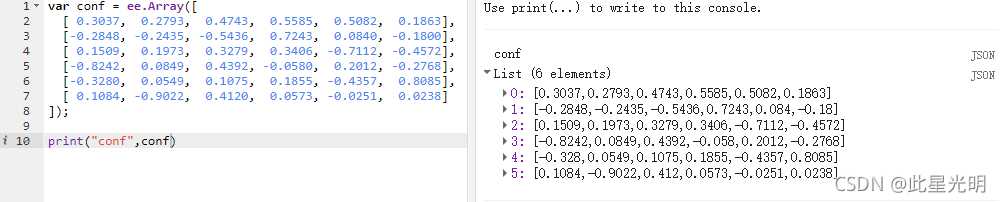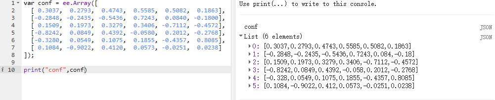 var conf = ee.Array([ [ 0.3037, 0.2793, 0.4743, 0.5585, 0.5082, 0.1863], [-0.2848, -0.2435, -0.5436, 0.7243, 0.0840, -0.1800],...