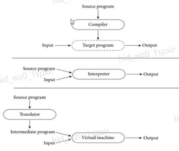 最下面的图示代表Java,比较特殊要经过两步处理,先翻译成Intermediate program,然后在利用虚拟机(JVM)运行。