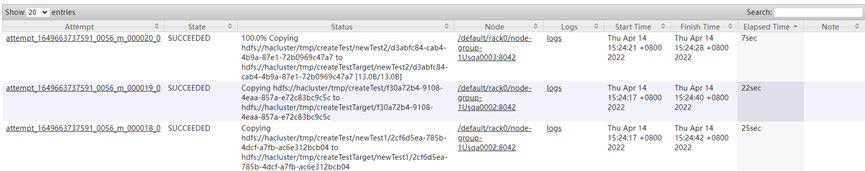 如果有更大数据量的差异存在,这个执行时间可能会相差更多。因此需要调整distcp任务的分配逻辑。