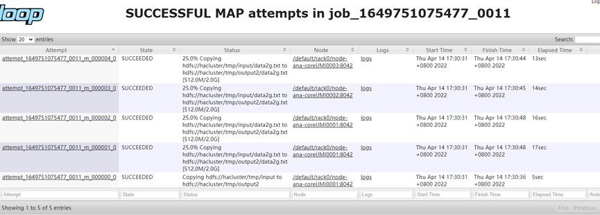 hadoop distcp -m 5 /tmp/source /tmp/target