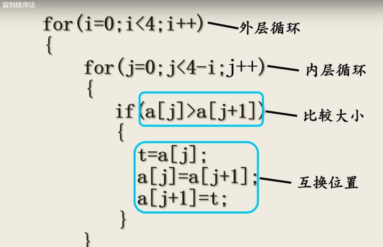冒泡排序的思想:两两相邻的元素作为比较,并且可能的话需要交换