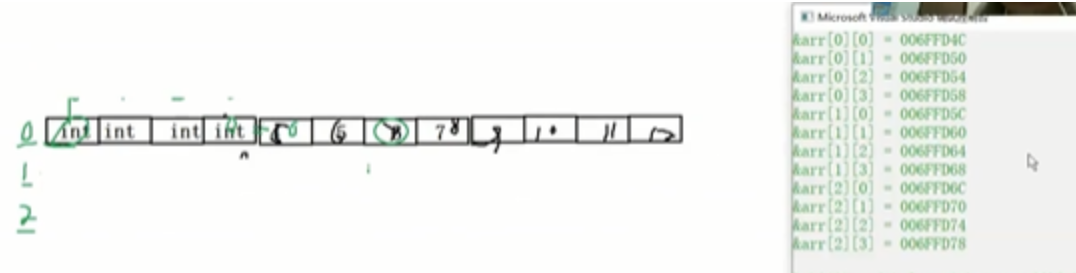 二维数组在内存里面也是连续存放的!