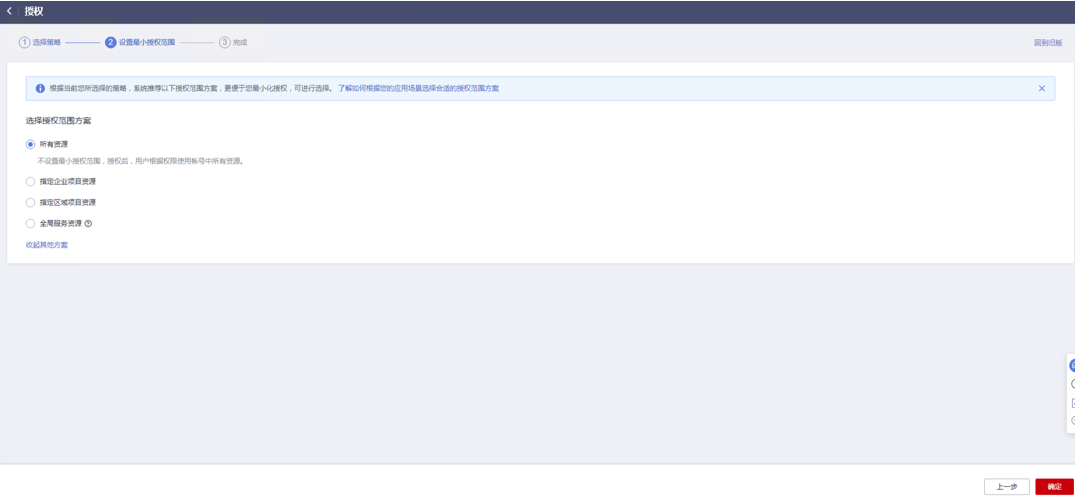 3)设置最小授权范围,此处选择所有,实际可根据项目情况分配。