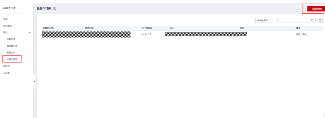 将压缩好的文件,上传到functiongraph的依赖包管理。