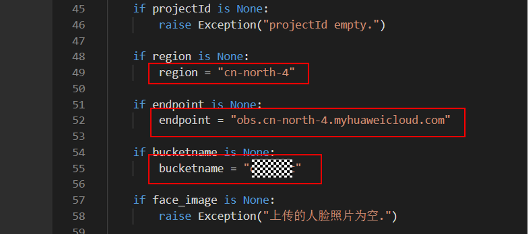 2)根据自己项目情况,设置默认Region、endpoint、buketname的值,若4.4.6节不设置环境变量的值,将默认取此处的默认值。如下默认是北京四