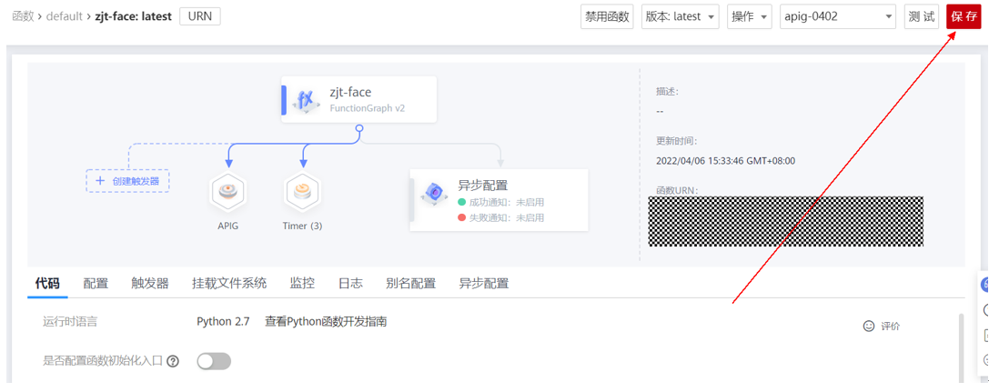 1)点击APIG触发器名称,前往APIG控制台,点击编辑