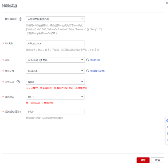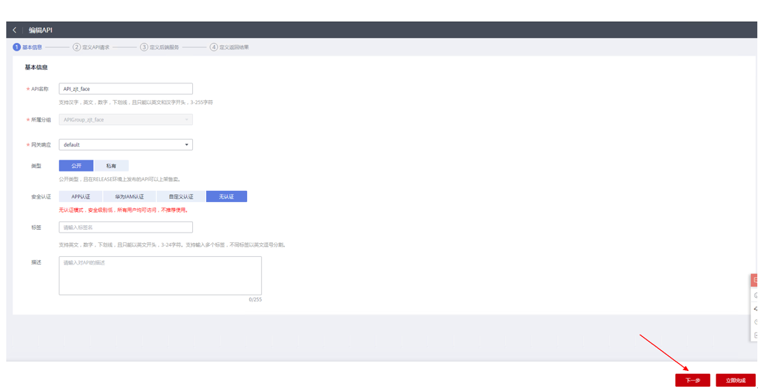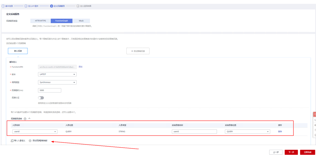 因为是在functiongraph创建的APIG,故此处已自动绑定functiongraph的函数为后端服务,故基础定义保持默认即可。
