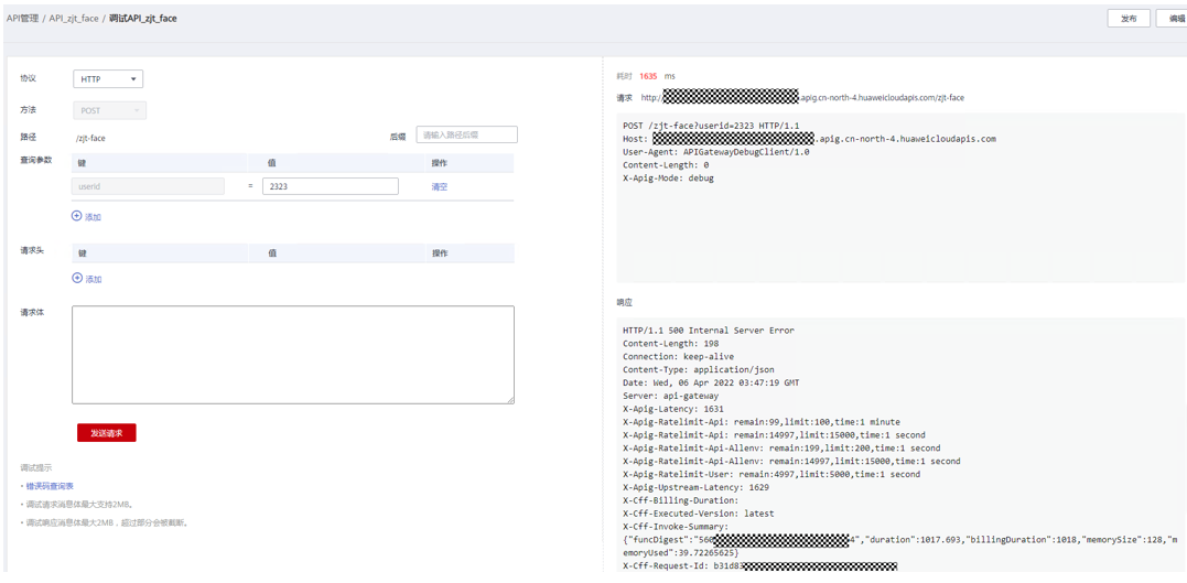 3、使用APIG触发functiongraph时,发现第一个api请求响应时间较长(2s多),后面的请求就较短了(约500ms)。