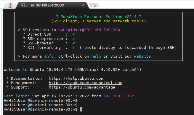 我们再将路由器地址换回到192.168.199.1,重新使用MobaXterm登陆192.168.199.204: