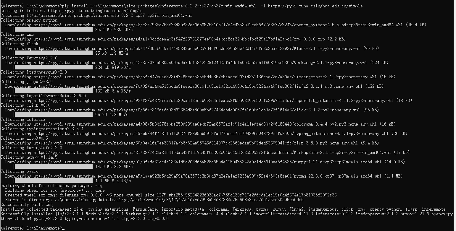 pip install L:\AI\airemote\site-packages\inferemote-0.2.2-cp37-cp37m-win_amd64.whl -i https://pypi.tuna.tsinghua.edu.cn/simple