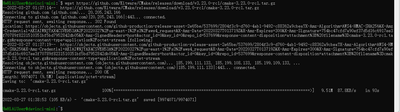 wget https://github.com/Kitware/CMake/releases/download/v3.23.0-rc1/cmake-3.23.0-rc1.tar.gz