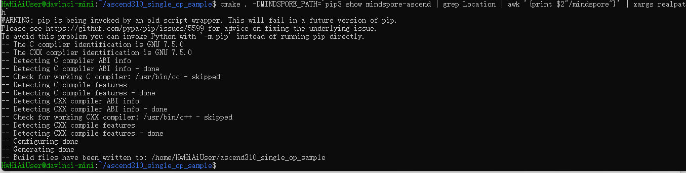 cmake . -DMINDSPORE_PATH=`pip3 show mindspore-ascend | grep Location | awk '{print $2"/mindspore"}' | xargs realpath`