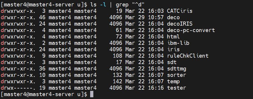 drwxrwxr-x. 9 master4 master4 108 Mar 22 16:04 ruleChkClient
