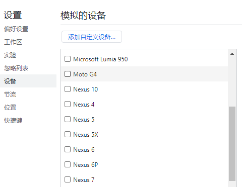 设备可以自行添加可调式的手机设备,一般也是前端工程师做兼容性使用,而且还可以自定义分辨率,非常方便。