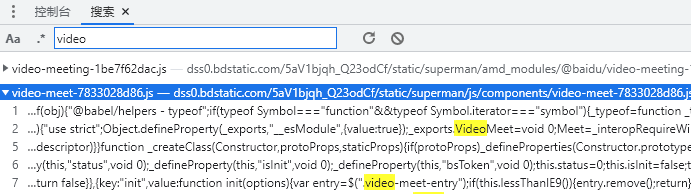 搜索功能可以在当前页面的所有静态资源中检索目标内容,在编写爬虫时出场率很高。也可以使用 ctr+shift+f 唤出对应的窗口。