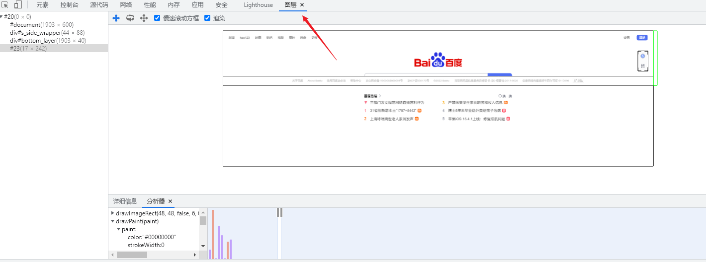 开启图层之后,可以直观的看到网页的渲染层级,对于前端工程师价值非常大。