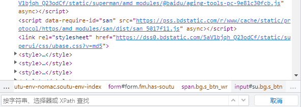 可以快速检索相关标签内容,直接按键盘上的快捷键 Ctrl+F,即可唤醒搜索框,注意搜索框在页面底部。