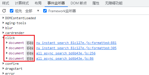 该功能在编写爬虫程序的时候,很常见,可以快速找到某些按钮绑定的时间,从而快速定位到指定的 JS 中。