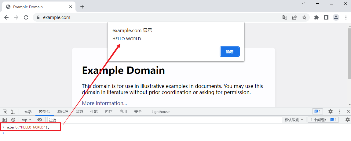 首先要知道的第一点就是可以在 > 符号后面编写 JS 代码,例如我们在网页中实现一个 HELLO WORLD 的弹窗。
