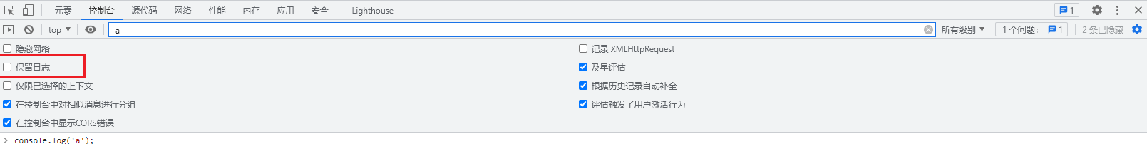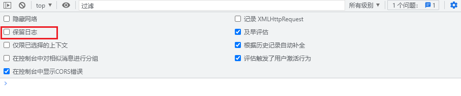 点击设置按钮,即可查阅控制台设置面板,其中保留日志就是非常好用的功能。