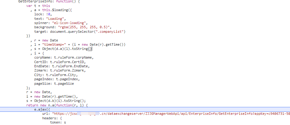 通过 EnterpriseInfo/GetEnterpriseInfo 关键字建立断点调试。