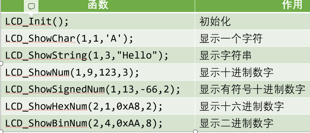 LCD_ShowString(1,3,"Hello"); 显示一个字符