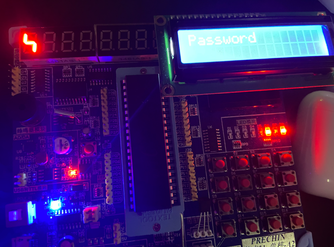 这里矩阵键盘的使用与LCD1602的模块一起可以实现一个密码锁