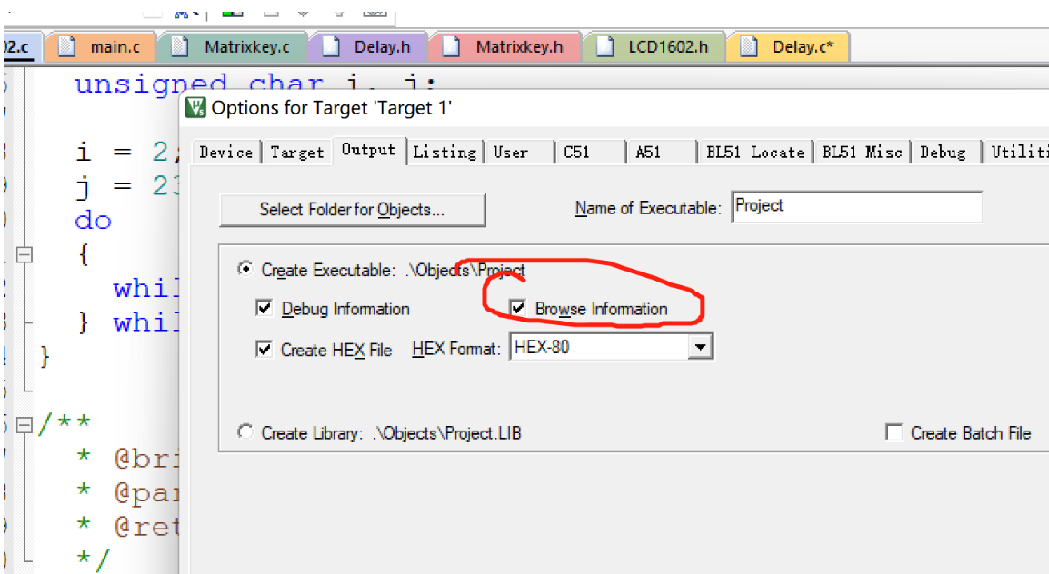 需要将文件Browse information 将他勾选进去,不然你的程序马上就报错!!