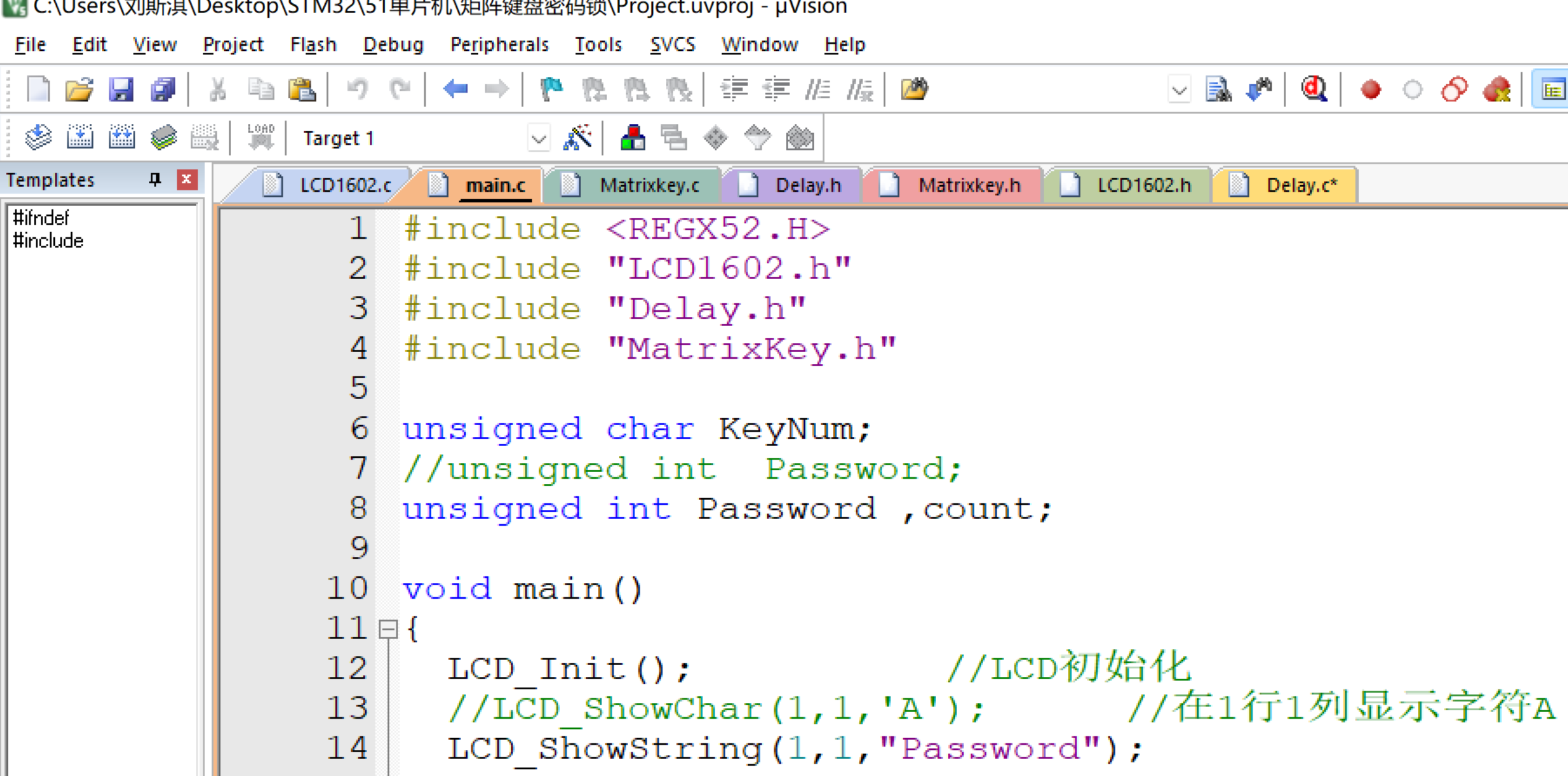 - LCD_ShowString(1,1,"Password");
