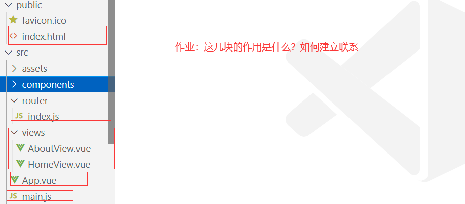 因为我们使用了脚手架,配置放在/src/router/index.js文件中。在脚手架里面创建完毕路由对象之后,将路由配置文件引入到main.js,并注册到Vue实例上。注册完毕之后才可以使用路由的内置组件router-link和router-view,这两个组件可以进行页面跳转。