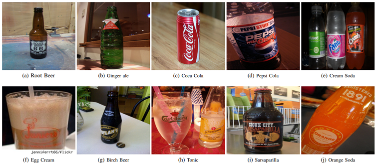 图像分类任务是计算机视觉最为基础的任务之一。依靠目标的细粒度、具有区分性的视觉特征能够较好地区分通用目标。然而,对于部分细粒度的类别,仅仅依靠视觉特征难以区分不同类别。如图1展示了不同类别的瓶子或建筑物,瓶子类别的类内差异大(同一类别的样本可以属于塑料瓶或属于玻璃瓶),类间差异小(不同类别的样本具有相同形状等)。然而,目标上的文本信息足以区分类别类型。基于此,一些方法试图引入图像内的场景文本作为额外的信息来辅助图像分类任务。联合场景文本和图像视觉信息共同推理、分析图像内容,是多模态融合分析的重要问题之一。