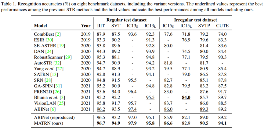 从实验结果可以看出来,该方法在比较困难的不规则图像中有较大提升。这说明当模型很难从视觉上进行识别的时候,文字之间的语义特征有助于识别。