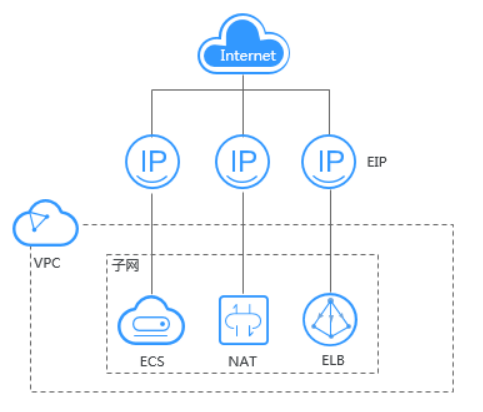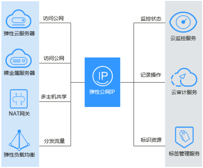 弹性公网 IP 与其他服务关系如下这样