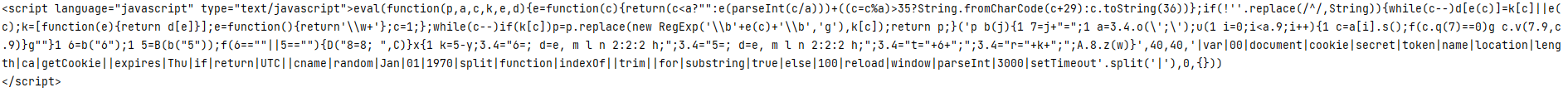 代码运行之后,并没有得到网页源码,而是获取到一段JS脚本,具体如下所示。