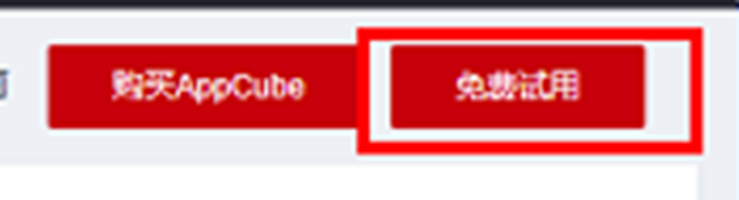2)认证通过后,点击官网页面“立即使用”,点击右上角“免费试用”,获取体验版权限。若已订购过AppCube可直接下一步。