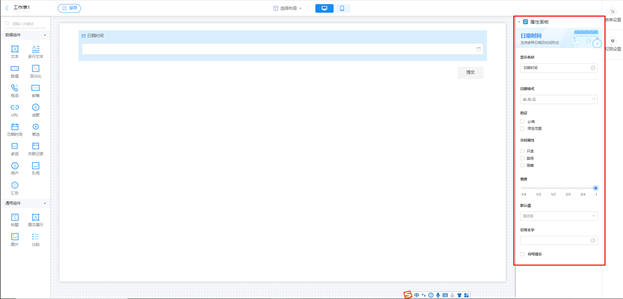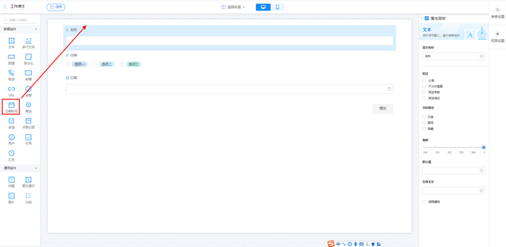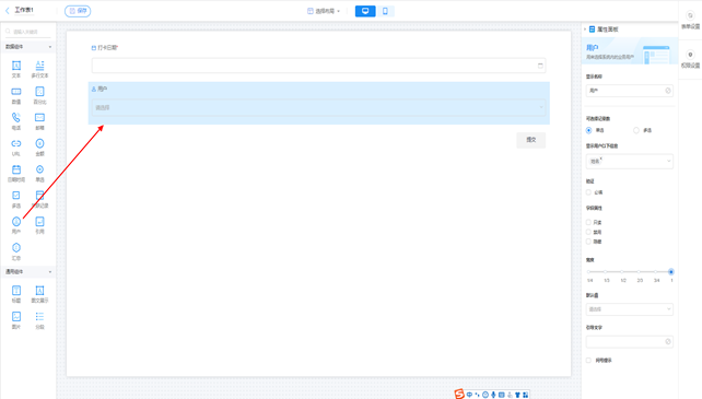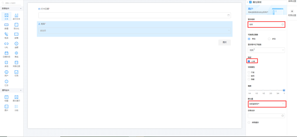 3)进入编辑界面,拖拽组件进画布。在画布右侧,编辑组件属性,例如编辑题目名称。