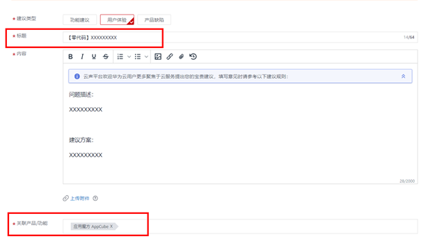 建议反馈地址:https://bbs.huaweicloud.cn/suggestion/new