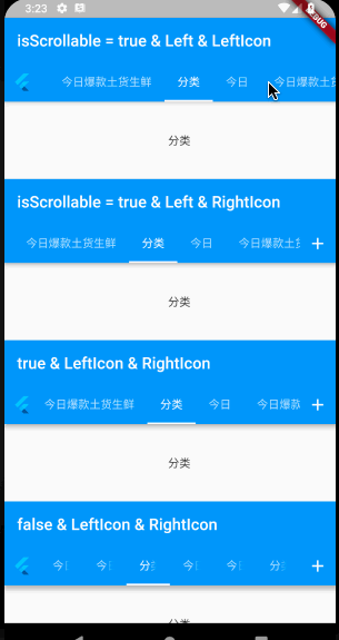 小菜尝试在 isScrollable 是否可滑动两种状态下,在导航栏中添加左右两个固定位图标;